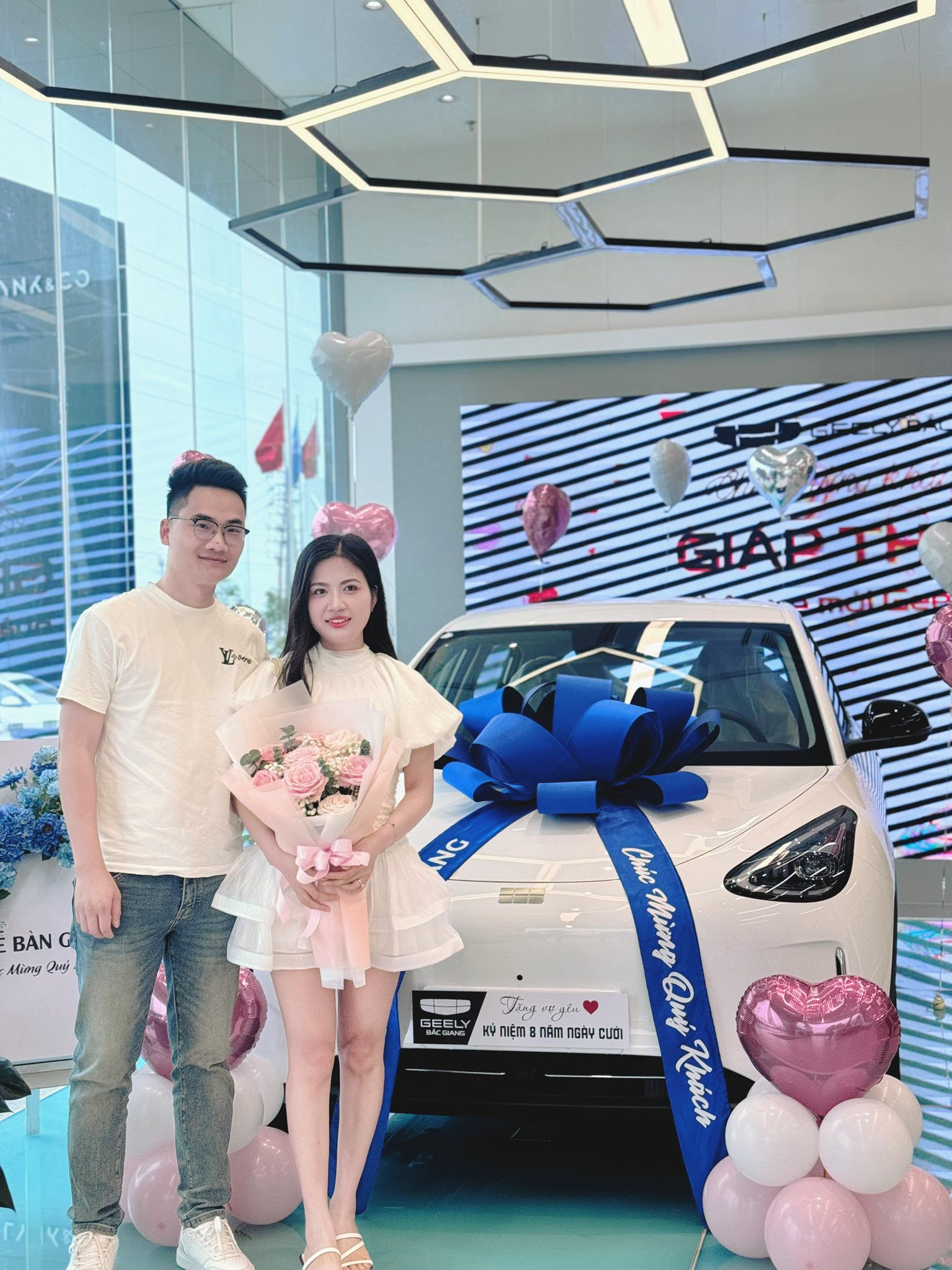 Geely Bắc Giang bàn giao chiếc xe Geely EX2 đầu tiên tại tỉnh Bắc Ninh tới Gia đình chị Giáp Thị Hải Xin chúc