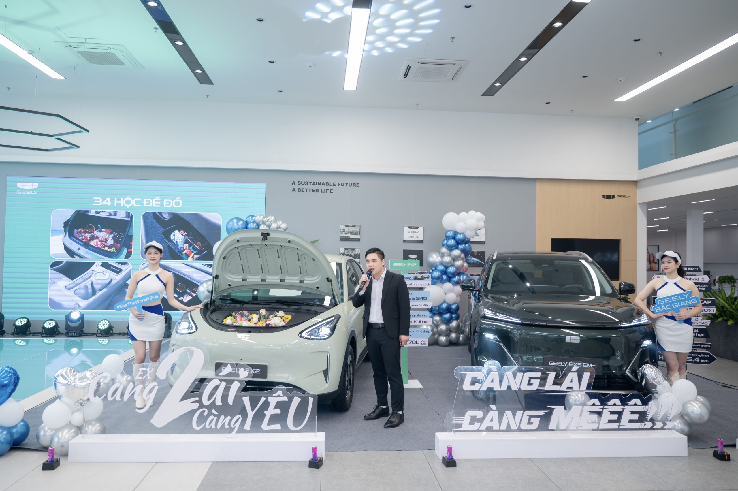 Ngày 28/03/2026, Bộ đôi xe năng lượng mới Geely EX2 và Geely EX5 EM-i đã chính thức ra mắt tại thị trường Bắc Giang. Hai tân binh được rất nhiều quý khách quan tâm và tham khảo lái thử!